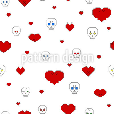 Halloween decoration pattern with contoured skulls and hearts.
