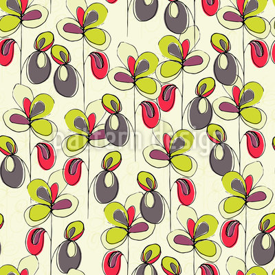 Decorative style, spontaneous line usage. Imaginary and slightly geometric flowers, interlacing in a romantic way, as if climbing a wall.