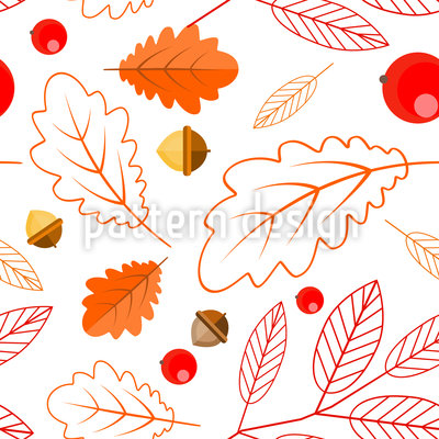 Botanisches Musterdesign von abstrakten Blättern, Eicheln und Beeren.