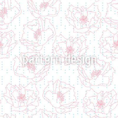 Nahtloses Muster mit großen handgezeichneten Mohnblumen und geometrischen Punkten im Hintergrund.