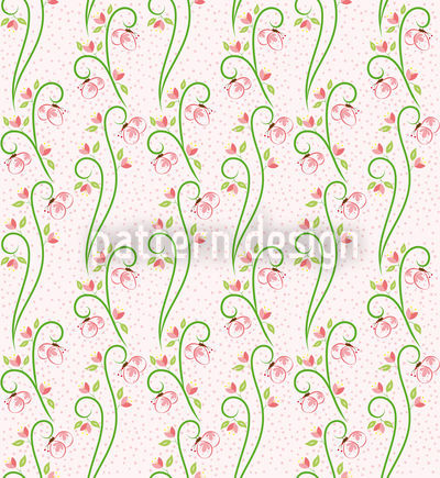 So romantisch! Kleine rosa-farbene Schmetterlinge sitzen auf kleinen grünen Blümchenstielen auf gepunktetem Hintergrund.
