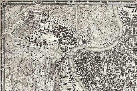 La pianta grande di Roma (Der große Plan von Rom), auch bekannt als The Nolli Map von Pietro Campana, Carlo Nolli und Rocco Pozzi. Original von der Yale University Art Gallery.