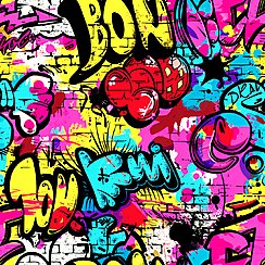 Ausdrucksstarkes Graffiti-Wall-Design mit urbanen Schriftzügen, rauer Streetart-Optik und kreativer Energie. Inspiriert von bemalten Stadtkulissen und echter Graffiti-Kultur.