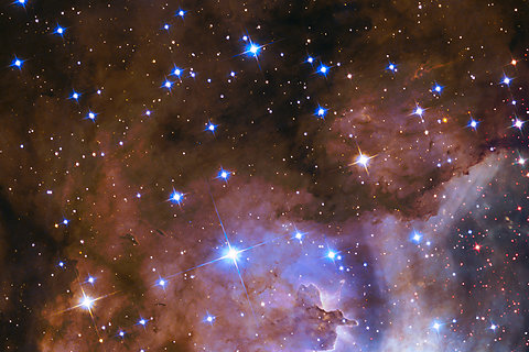 Hubble's 25th anniversary image features a giant, sparkling cluster of about 3,000 stars called Westerlund 2, located 20,000 light-years away from Earth. Credit: NASA, ESA, the Hubble Heritage Team (STScI/AURA), A. Nota (ESA/STScI), and the Westerlund 2 Science Team