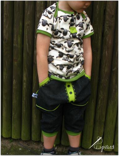 Nun hat er auch sein zweites Fäään-Outfit aus dem tollen Viskose-Jersey "Shauntastisch III" von der Stoff-Schmie.de